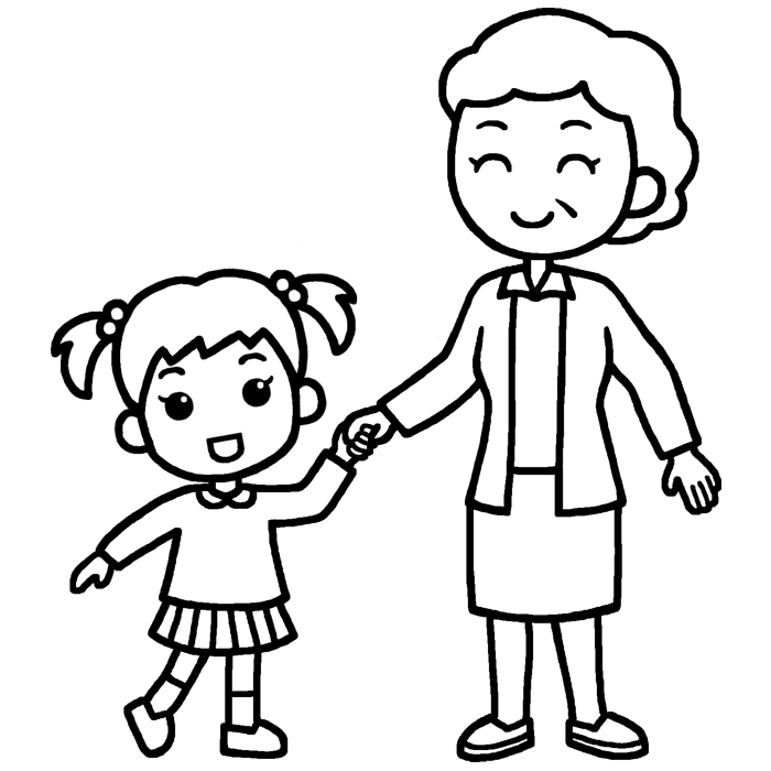おばあちゃんと(白黒)/敬老の日の無料イラスト/秋の季節・行事/保育素材