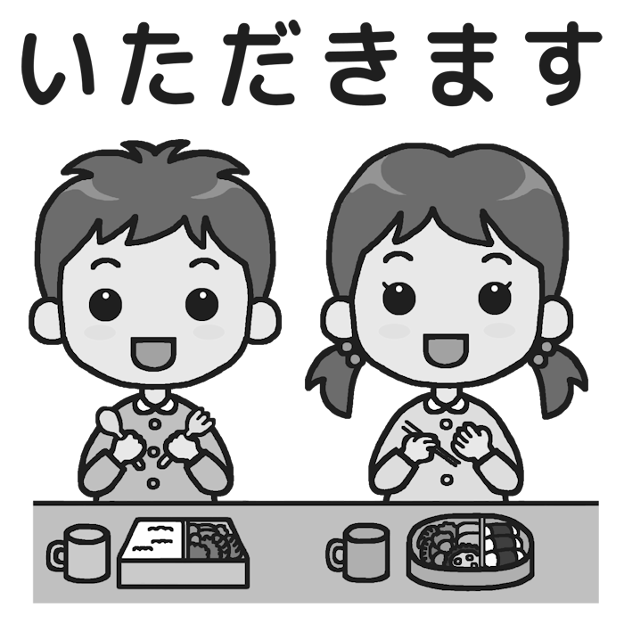 いただきます(モノクロ)/食事・お弁当の無料イラスト/園の生活/保育素材