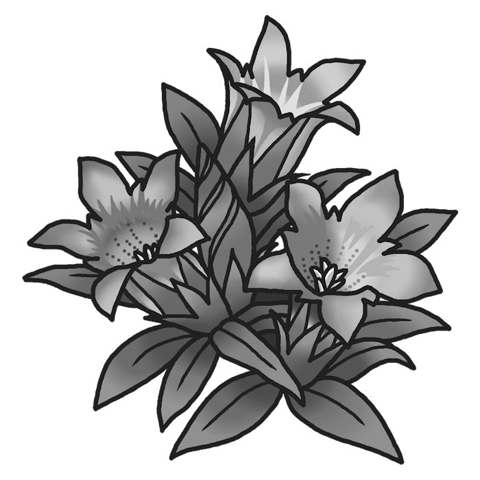 リンドウ/竜胆(モノクロ)/秋の花/無料イラスト素材