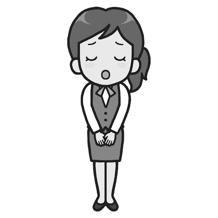 立ちポーズ4(モノクロ)/社員・女性/販売・ビジネス/無料イラスト素材