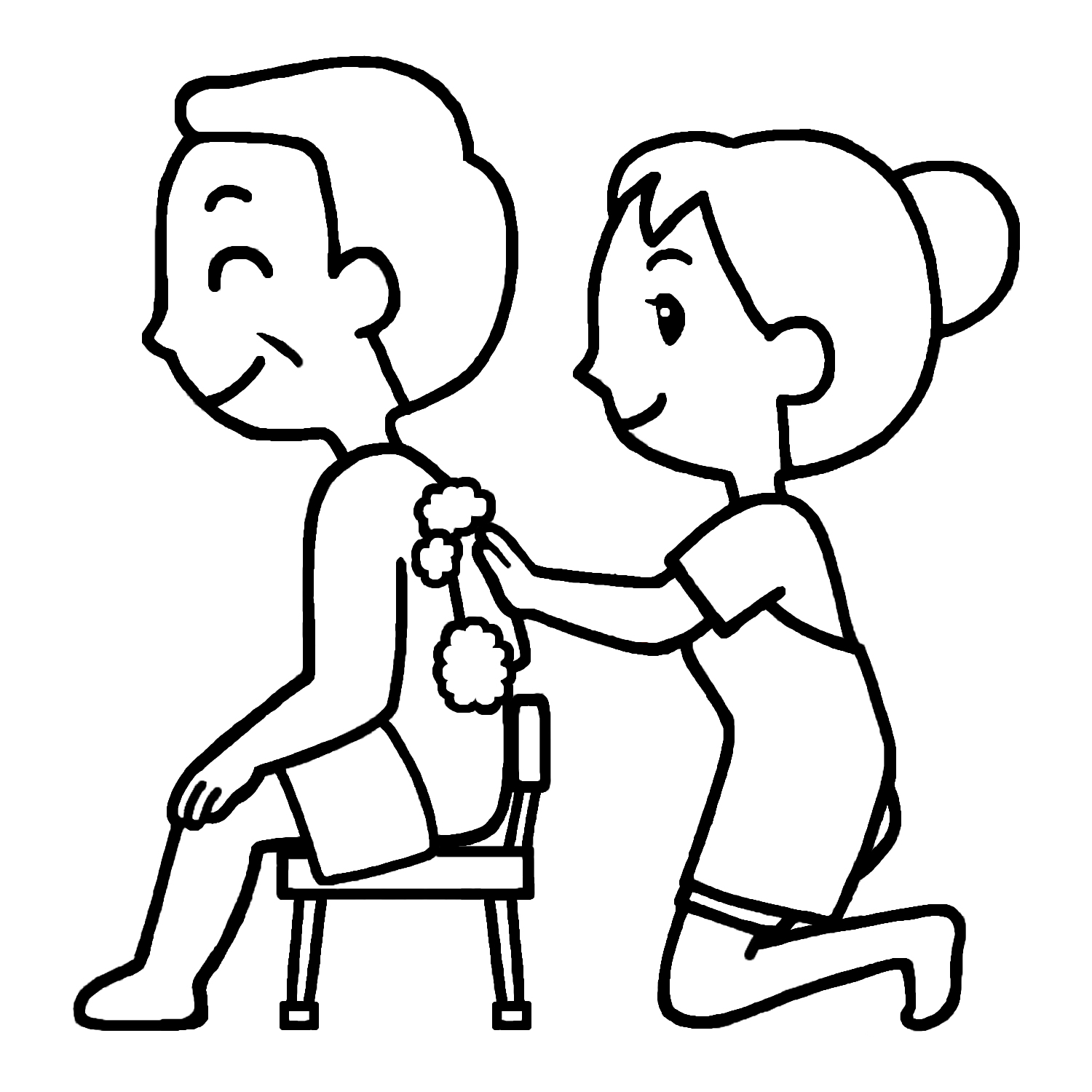 背中を洗う1(白黒)/体を洗う/入浴/介護・医療/無料イラスト素材