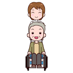 車椅子のイラストです。車椅子のおばあさん・おじいさん、車椅子で移動するおばあさん・おじいさん、など。