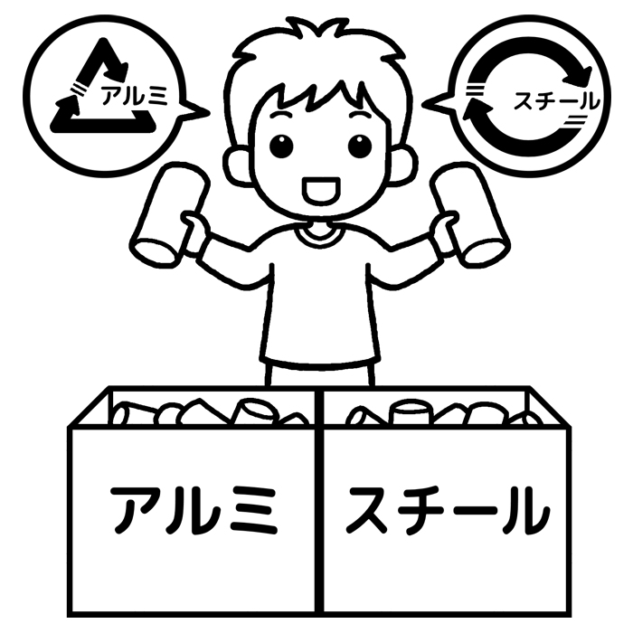 アルミ・スチール分別(白黒)/リサイクル/環境美化の無料イラスト/人物素材