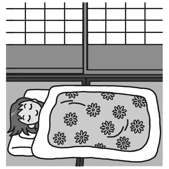 ふとん(モノクロ)/就寝の無料イラスト/生活・くらし/人物素材