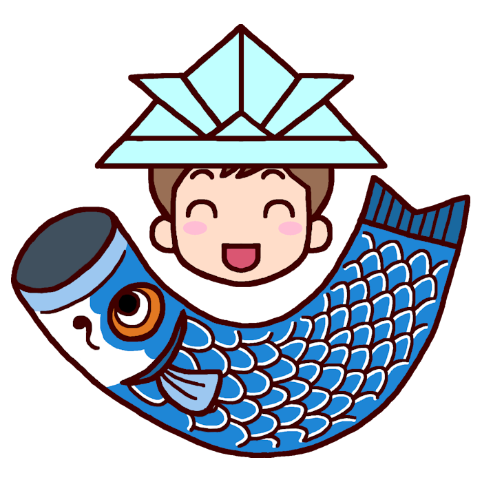 鯉のぼりと男の子3(カラー)/こどもの日の無料イラスト/春の行事・季節素材