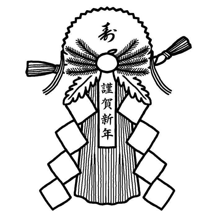 しめ飾り・注連飾り1(白黒)/年賀状・お正月の無料イラスト/冬の季節・行事素材