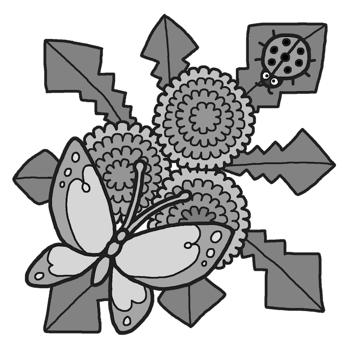 タンポポとちょうちょ(モノクロ)/春の無料イラスト/春の季節素材