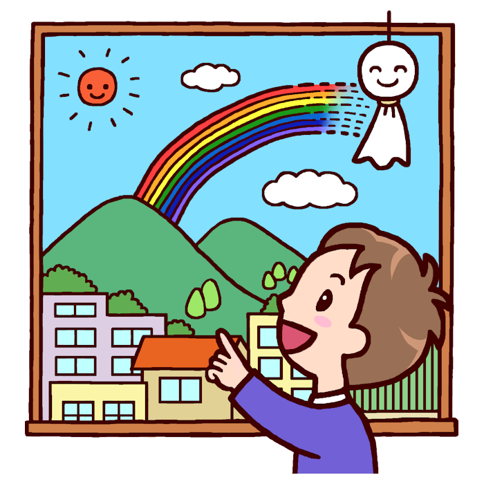 雨上がりの虹(カラー)/梅雨・6月の無料イラスト/夏の季節・行事素材