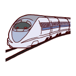 乗り物のイラストです。電車、路面電車、新幹線1・2、など。
