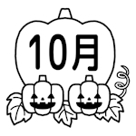 秋のタイトルのイラストです。読書の秋、実りの秋、ハロウィン、落ち葉など。