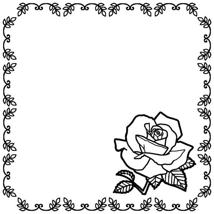 バラ1(白黒)/バラの花4/枠・ふきだし/無料イラスト素材