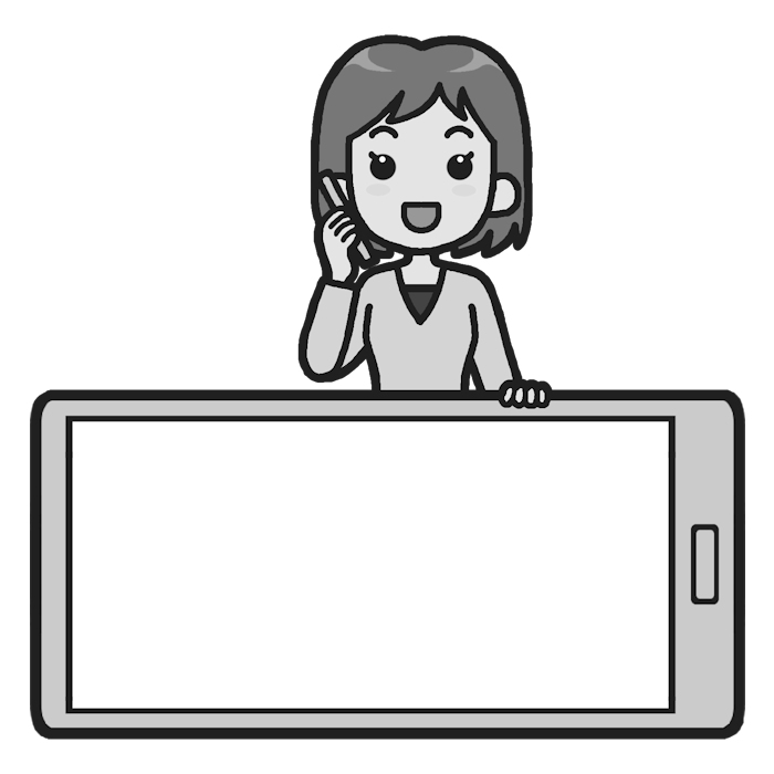 女性(モノクロ)/スマホ/枠・ふきだし/無料イラスト素材