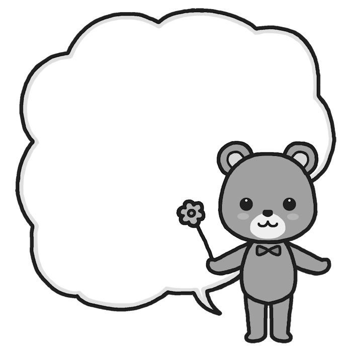 クマ(モノクロ)/動物/枠・ふきだしの無料イラスト素材
