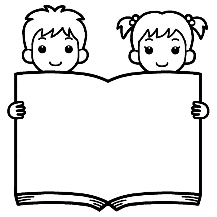 男の子と女の子1(白黒)/本/枠・ふきだし/無料イラスト素材