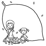 枠・ふきだし、秋の季節・行事(秋1)のイラストです。紅葉、どんぐり拾い、落ち葉、いも掘り、 など。