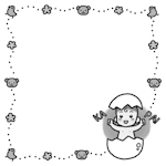枠・ふきだし、人物(赤ちゃん1)のイラストです。生まれたよ、ゆりかご、ダンシングベビー、アヒルといっしょ、 など。